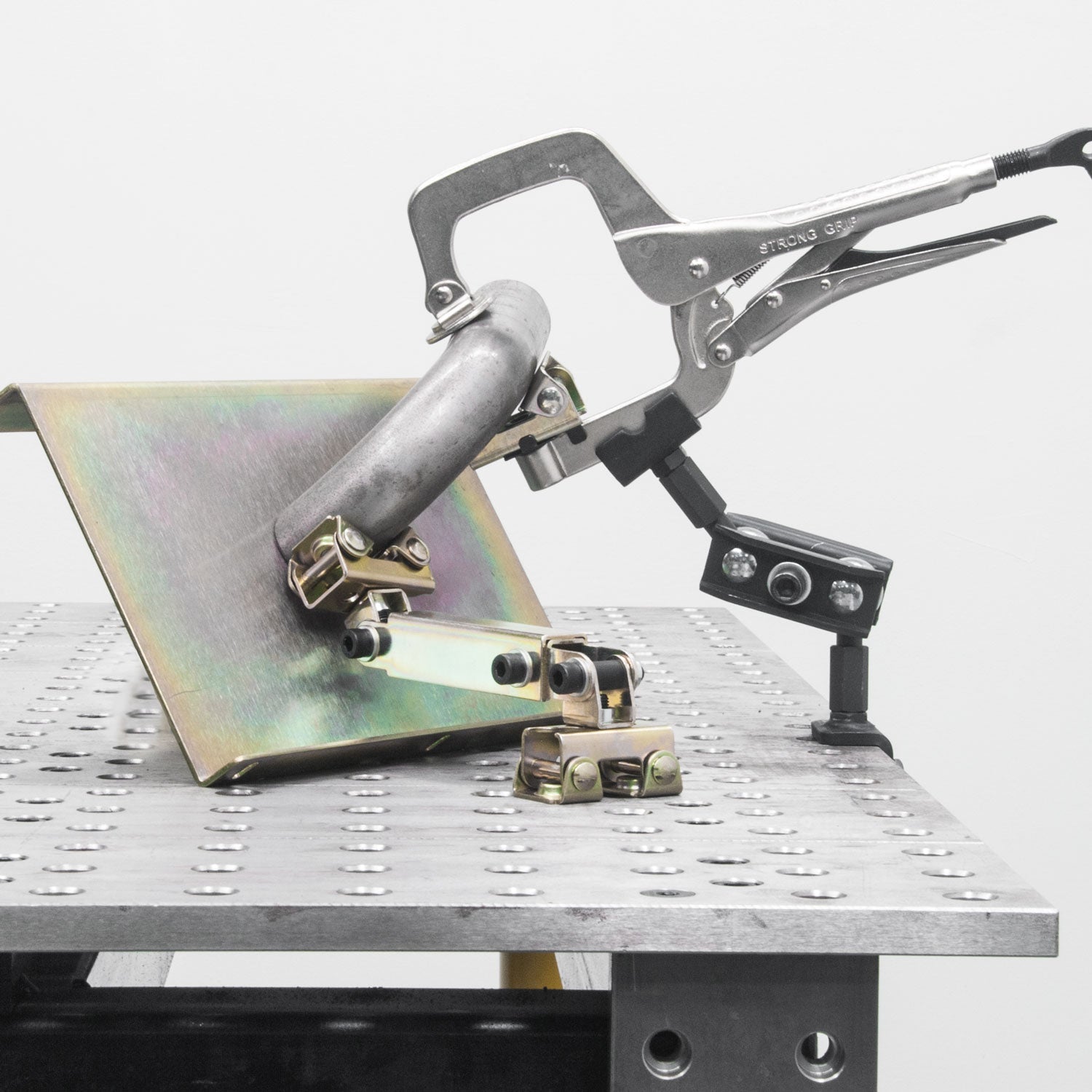 Svěrná základna se dvěma otvory (HAS40) je kompatibilní se svařovacími stoly Rhino Cart a BuildPro pro montáž na libovolném místě desky stolu.