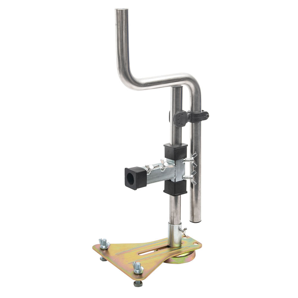Die Handballenauflage ist höhenverstellbar [schieben Sie die Stützsäule nach oben oder unten]. Stellen Sie die stabile, kippsichere, magnetische Grundplatte auf eine beliebige Stahloberfläche und nivellieren Sie sie mit den beiden Nivellierbolzen.