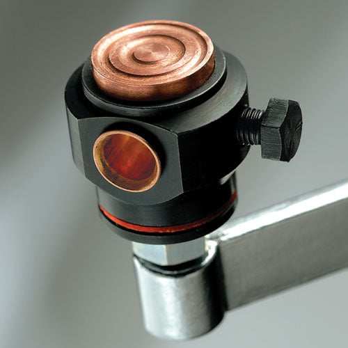 Das Rillendesign des Kupferkopfs dichtet Schweißspritzer ab und reduziert die Ansammlung von Partikeln. Die seitliche Schraube sorgt für eine sichere Kabelverbindung. Der Ground Hog-Körper lässt sich zur Kabelpositionierung drehen.