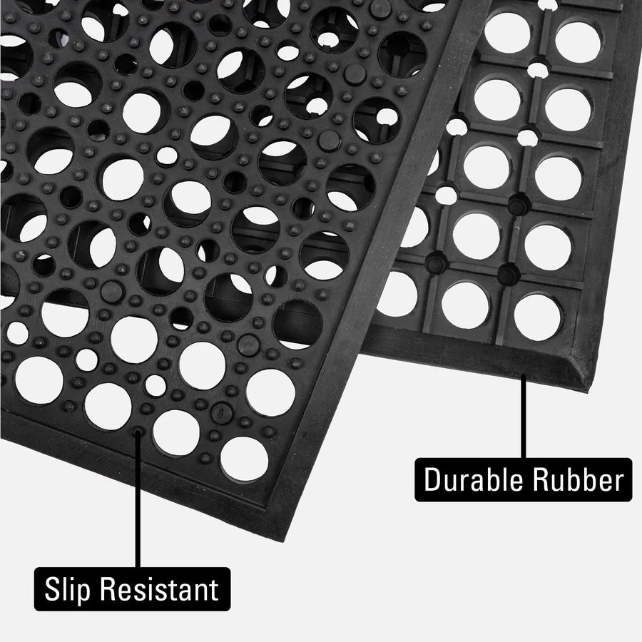 This cushioned rubber mat reduces fatigue during long hours on the shop floor. Through-holes let metal debris fall through, helping keep sharp fragments off your shoes. Durable, easy to clean, and ideal for welding bays, fab areas, or tool benches.