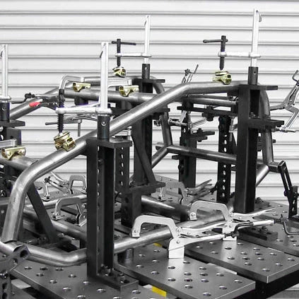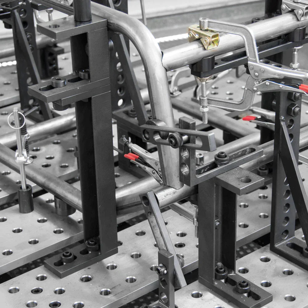 Place Inserta Pliers or Inserta Clamps into any of the CNC machined holes for horizontal or vertical clamping at any height. Stack the Clamping Squares to brace tall workpieces. Use the top holes for mounting the Squares in a fixed location. The lower base is slotted for adjustable mounting.
