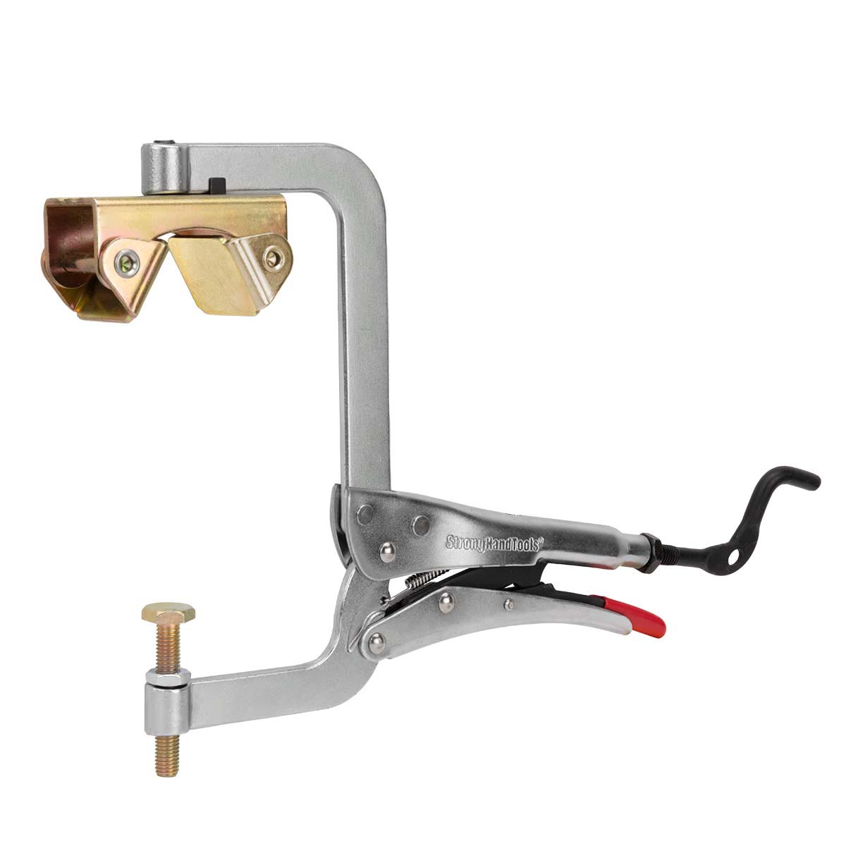 Featuring an adjustable V-Pad on the top jaw and a spindle on the bottom jaw to securely clamp to round pipes.