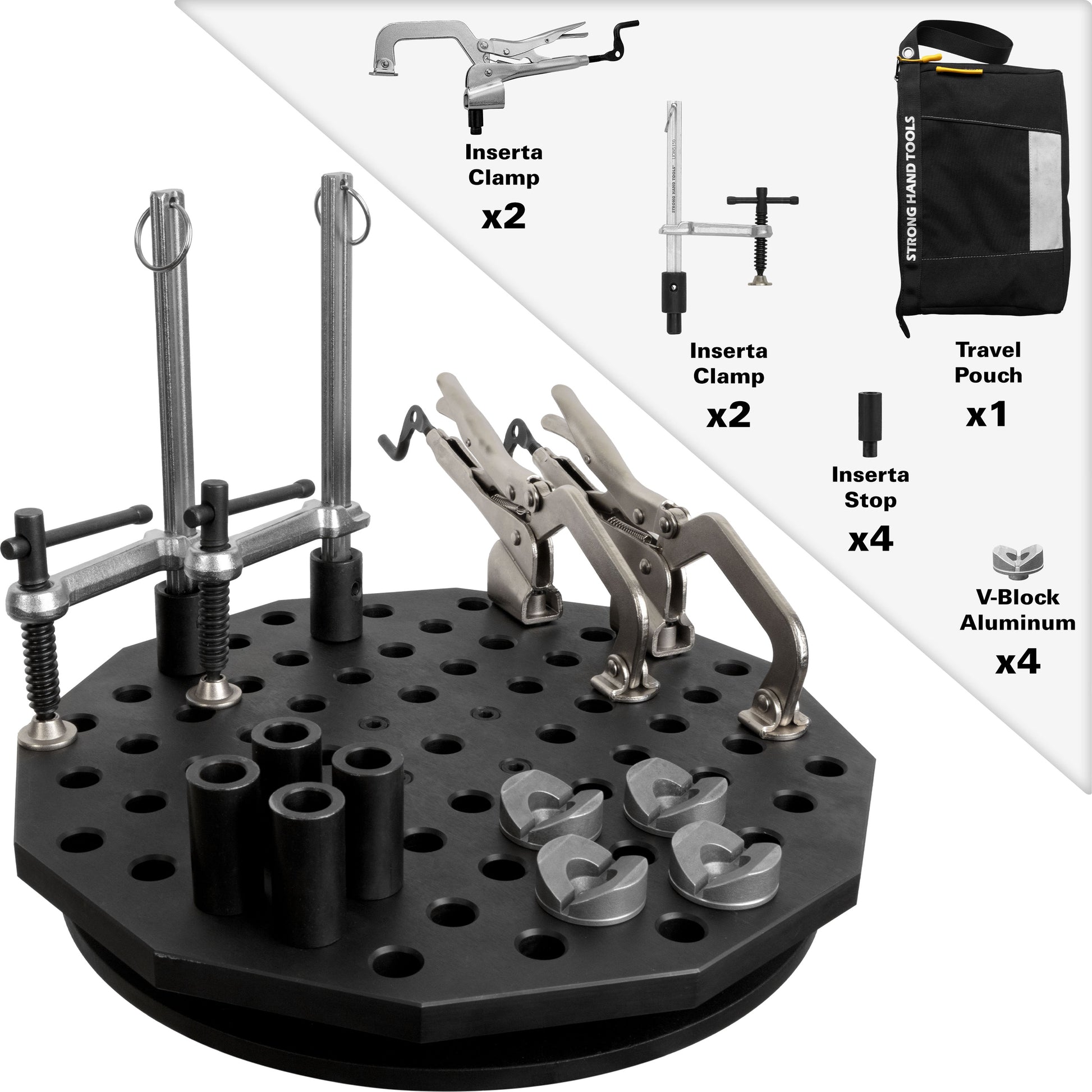 Take your welding and clamping projects mobile with this compact Fixed Tripod Fixturing Kit. Designed for maximum portability without compromising stability, the kit features a 356 mm Modular Top Plate mounted on a rugged Fixed tripod stand, plus a full set of precision clamping and positioning tools. Perfect for tight spaces, job sites, or workshops where flexibility is key.