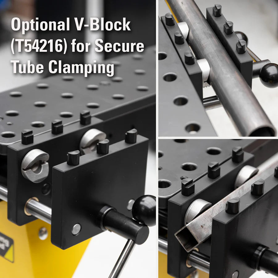 - Option to add two V-Blocks for a secure grip on round tubing (sold separately).