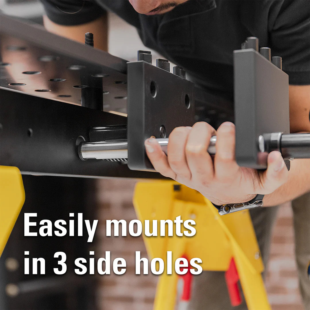 - Mounts easily in any of the three side holes on your Sawhorse for a rock-solid hold.