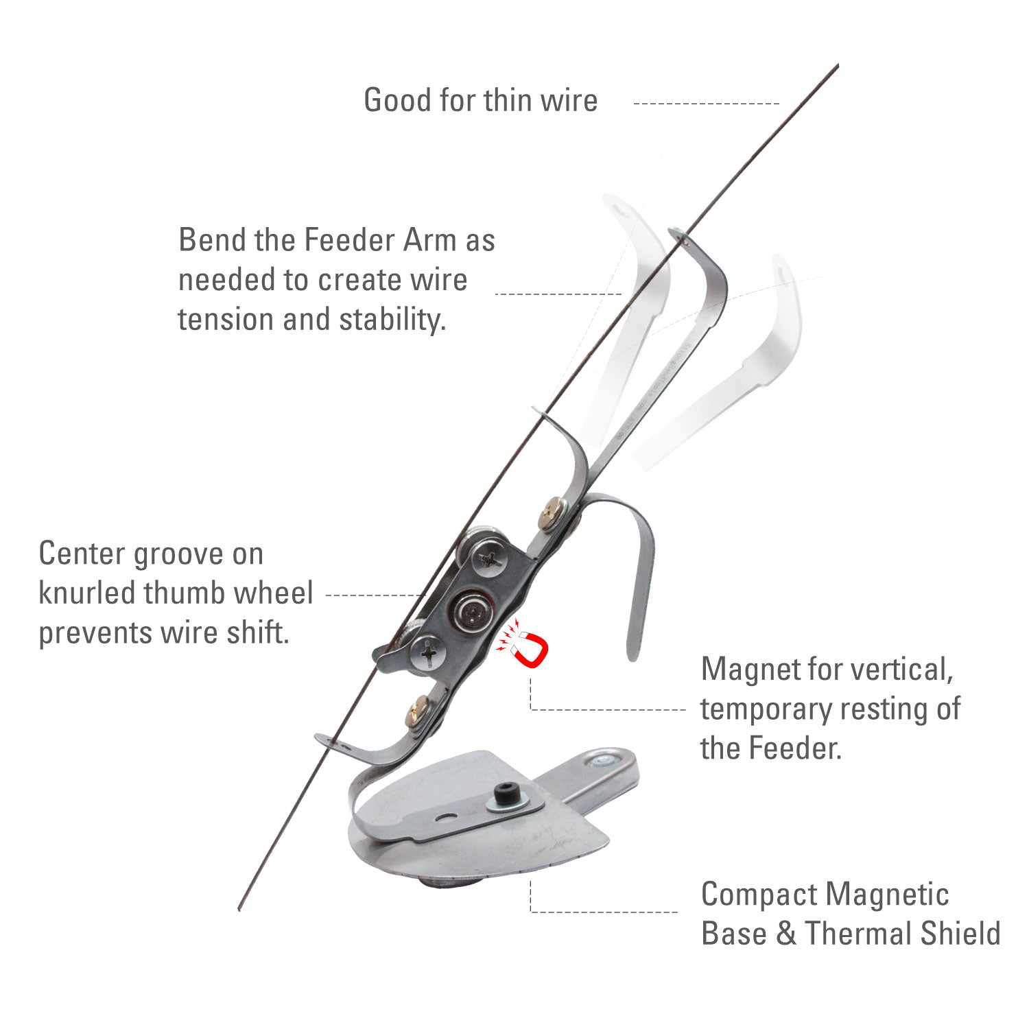 Smoothly feed TIG wire for total control and accuracy, at the ideal distance, for higher quality welding, even with gloves on! Minimize filler wire waste.